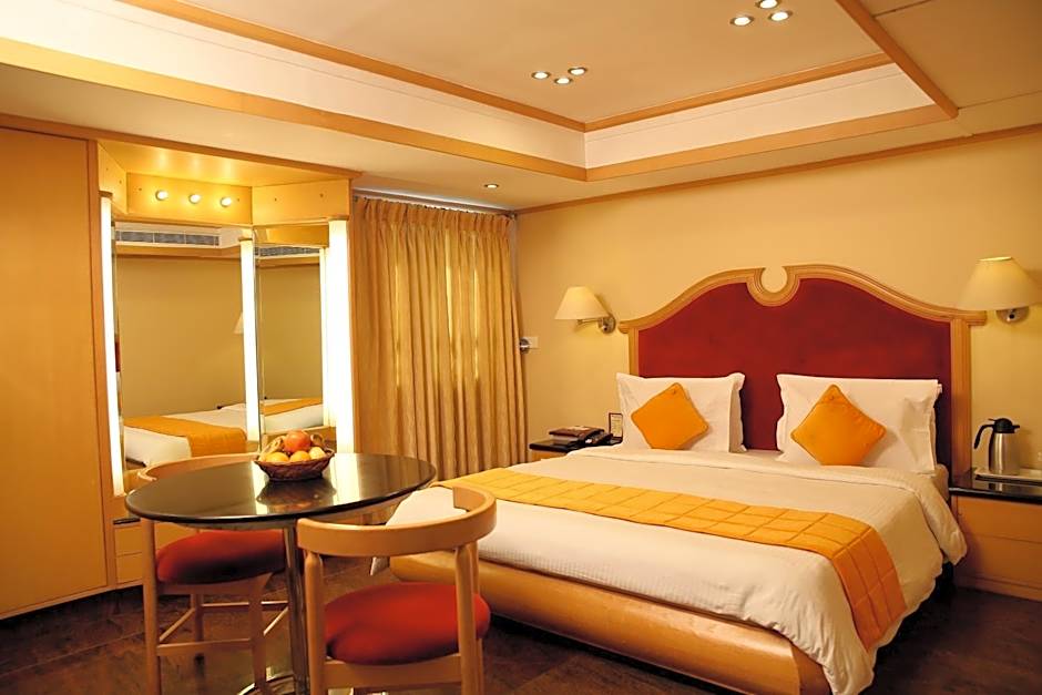 The spacious suite features a seating area and a sofa. It includes a living room and a mini-bar as well.